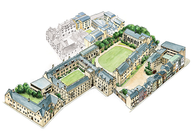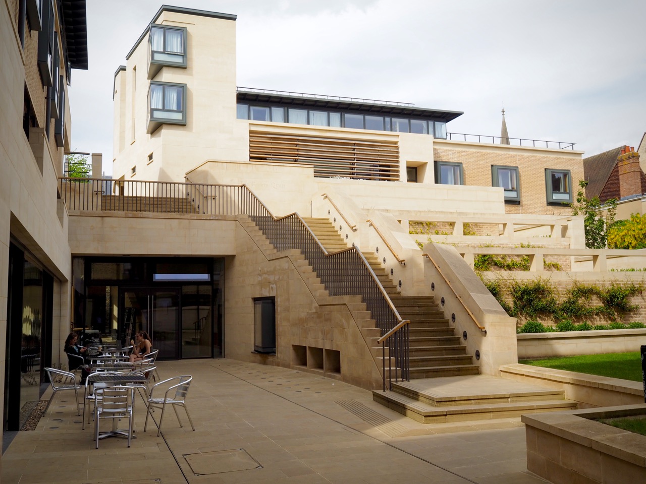 The Oxford practice of BGS is particularly known for its higher education buildings, including successful additions to several Oxford colleges. Here they have created an intriguing complexity of form on a tight and sensitive site. Externally, four of the new buildings are on street frontages, the north side reinforcing the canyon-like quality of Brewer Street; and the others sitting well with existing buildings on Littlegate Street and Rose Place. Within the site, three buildings form the quad, and by mirroring the layout of the adjacent Campion Hall (Sir Edwin Lutyens, 1936) create a much larger open space that is shared visually, to the advantage of both neighbours. Levels are also employed to great effect: the new complex is entered at a high level, via the bridge, and descends to a level several metres below the main college site, incorporating planted terraces and steps. The main materials are limestone and pale brown brick. Overall, this produces a contemporary interpretation of the traditional Oxford quad that respects its setting and provides high quality modern facilities.