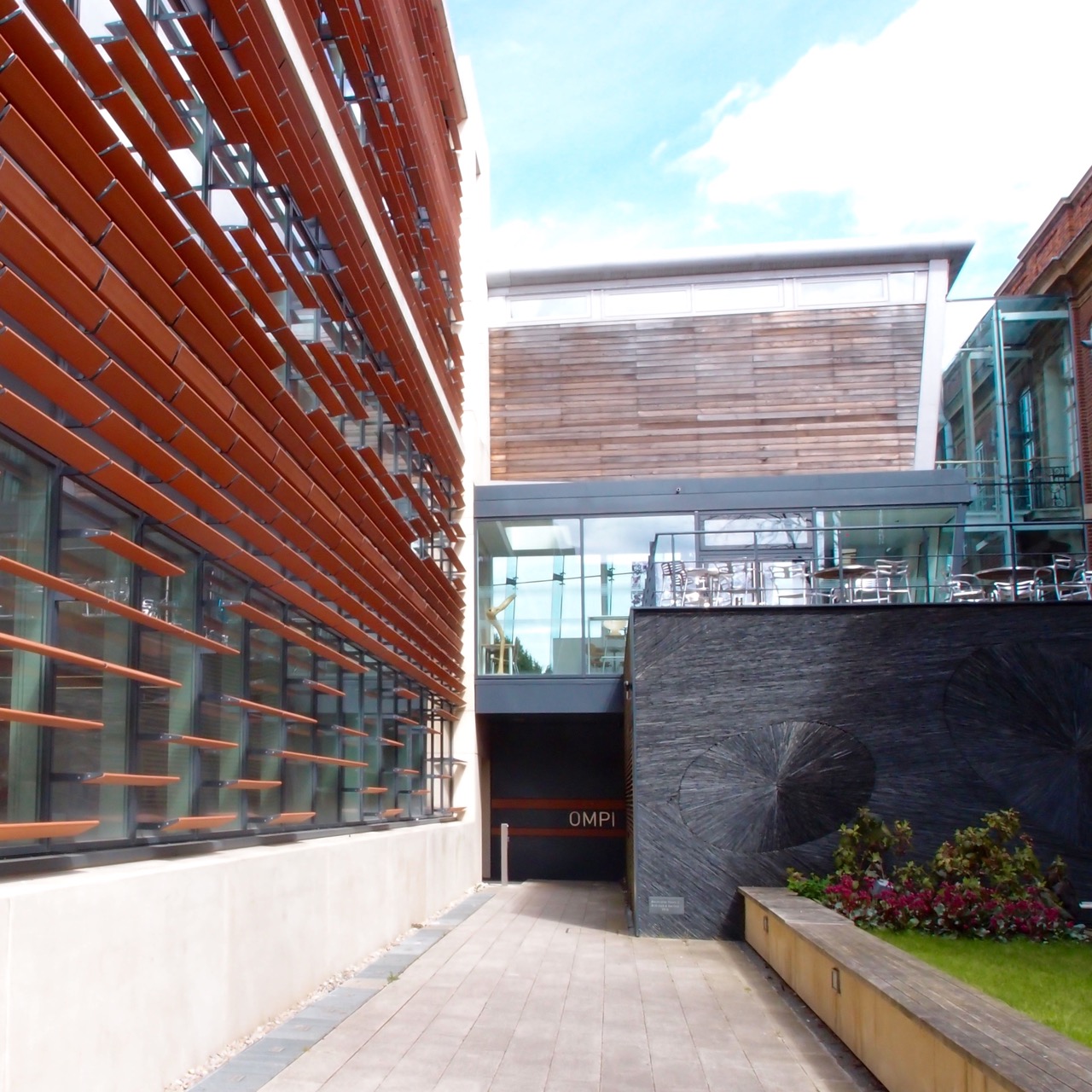 The second of five science laboratory buildings designed by the partnership between Make Architects and Nightingale Associates (now part of IBI group), OMPI sits behind the original Sir William Dunn building (E P Warren, 1926) on South Parks Road, and next to the EP Abraham Building (2001), replacing a modern block (Sir Leslie Martin, 1969). Coloured metal louvres reference the dark red brick of the original building, and a basement data centre with heat recycling helps the new laboratory to achieve a BREEAM Excellent rating. As with most contemporary research buildings, the design set out to bring disparate groups together in one place, and to facilitate encounters and interaction between them, showing how the social aspects of scientific research have become more prominent.