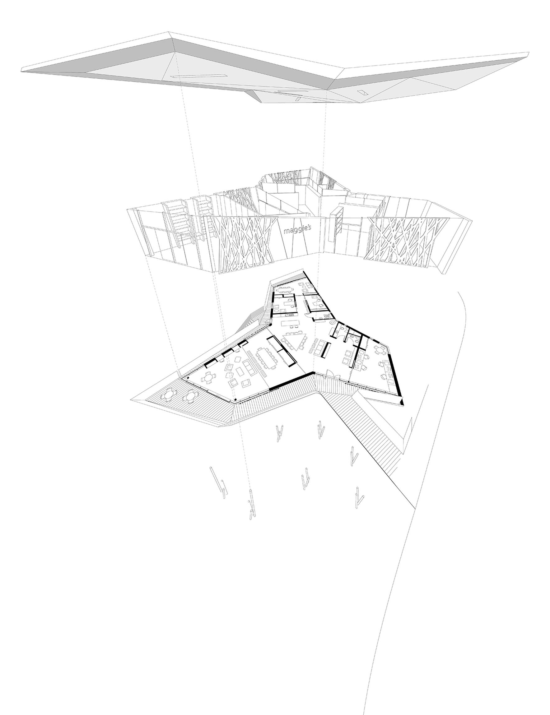 Maggie’s centres, of which there are now some 15 in the UK, provide practical, emotional, and social support for cancer patients. They are housed in unique buildings designed by leading architects. The Oxford centre sits in a wooded corner of the grounds of Churchill Hospital, with views over fields to the south. Built mainly of timber and glass, the building provides separate areas for information, therapy and relaxation, linked to a central space. With its angular, shack-like forms it is an exquisite version of a tree-house, with a predominance of timber; in plan it looks like it might fly if you threw it like a boomerang. An extraordinary miniature from these masters of structural expression.