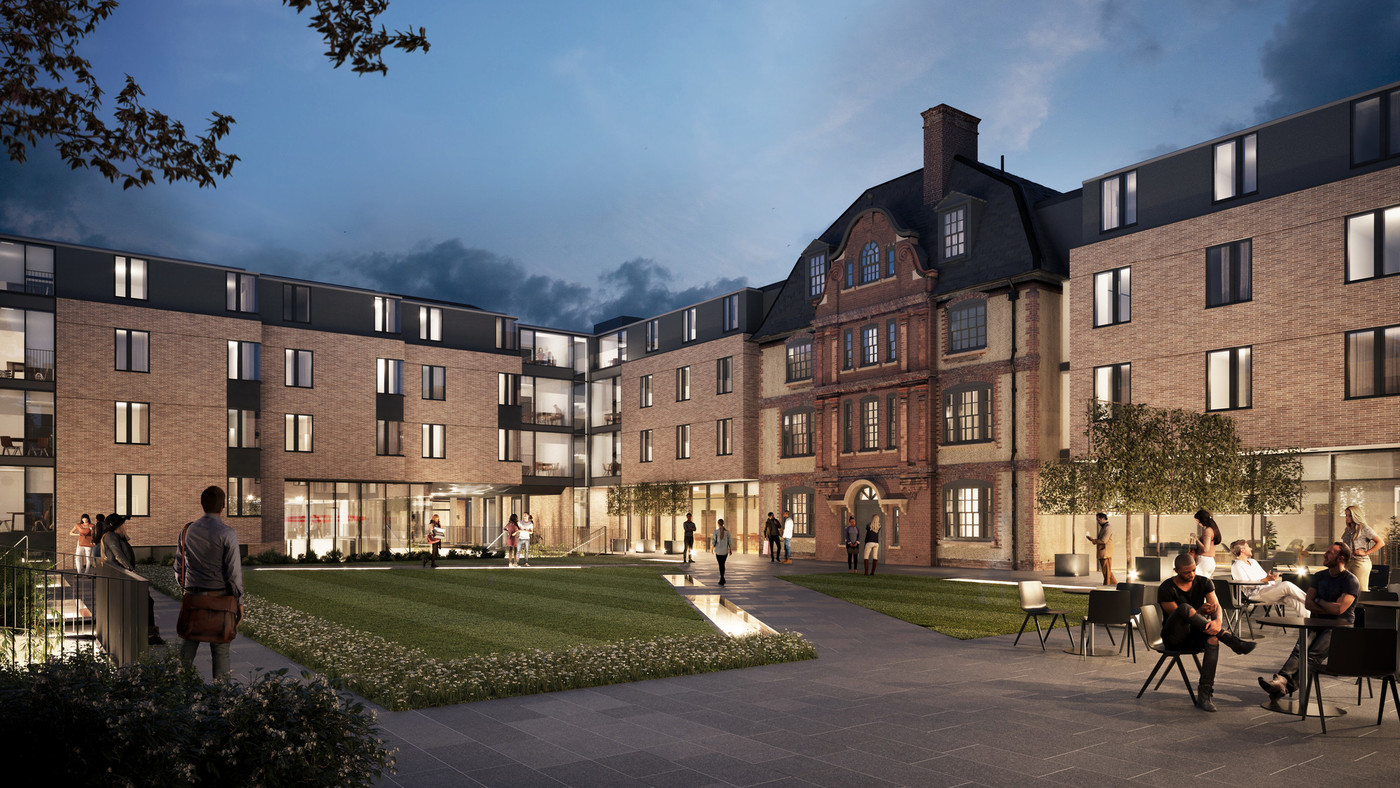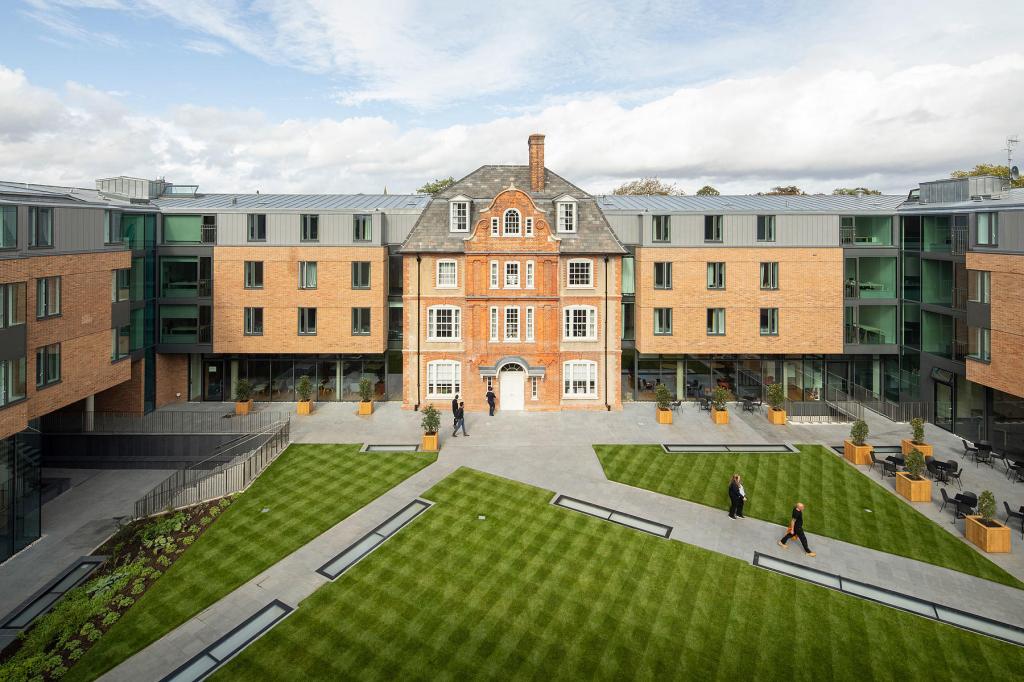 New quad situated 300m north of the original college, with student rooms and associated facilities, incorporating research and laboratory space (Rick Mather/MICA, 2019)