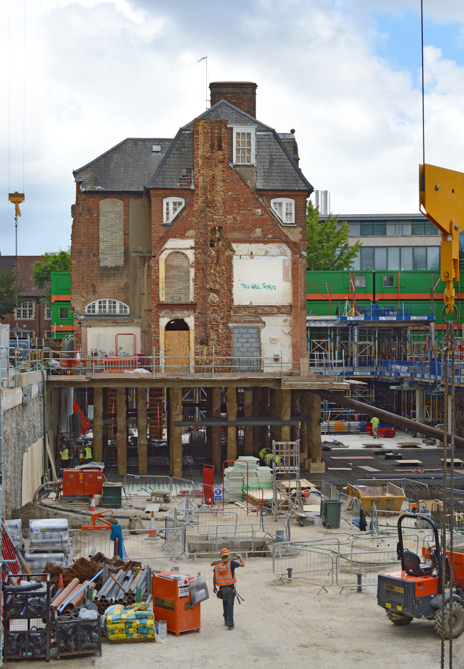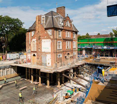 “The high point was when the Grade II* listed building central to this site was free standing on its newly installed piled legs. Having completely excavated under the listed building, extremely accurate laser monitoring was in place, confirming that once on its legs, the building had only moved 2mm.”- Bidwells